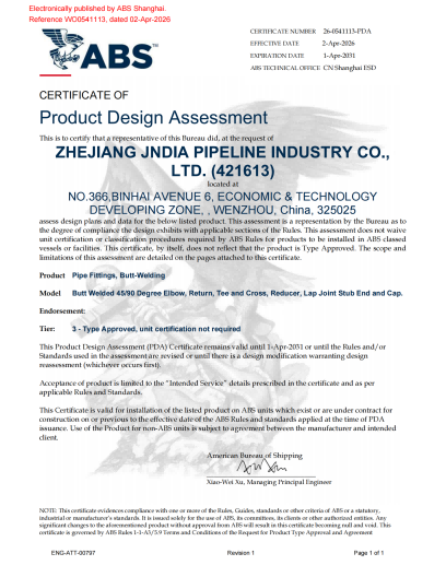 Certificate of Approval of Manufacturers of Materials-Seamless Pipe Fittings